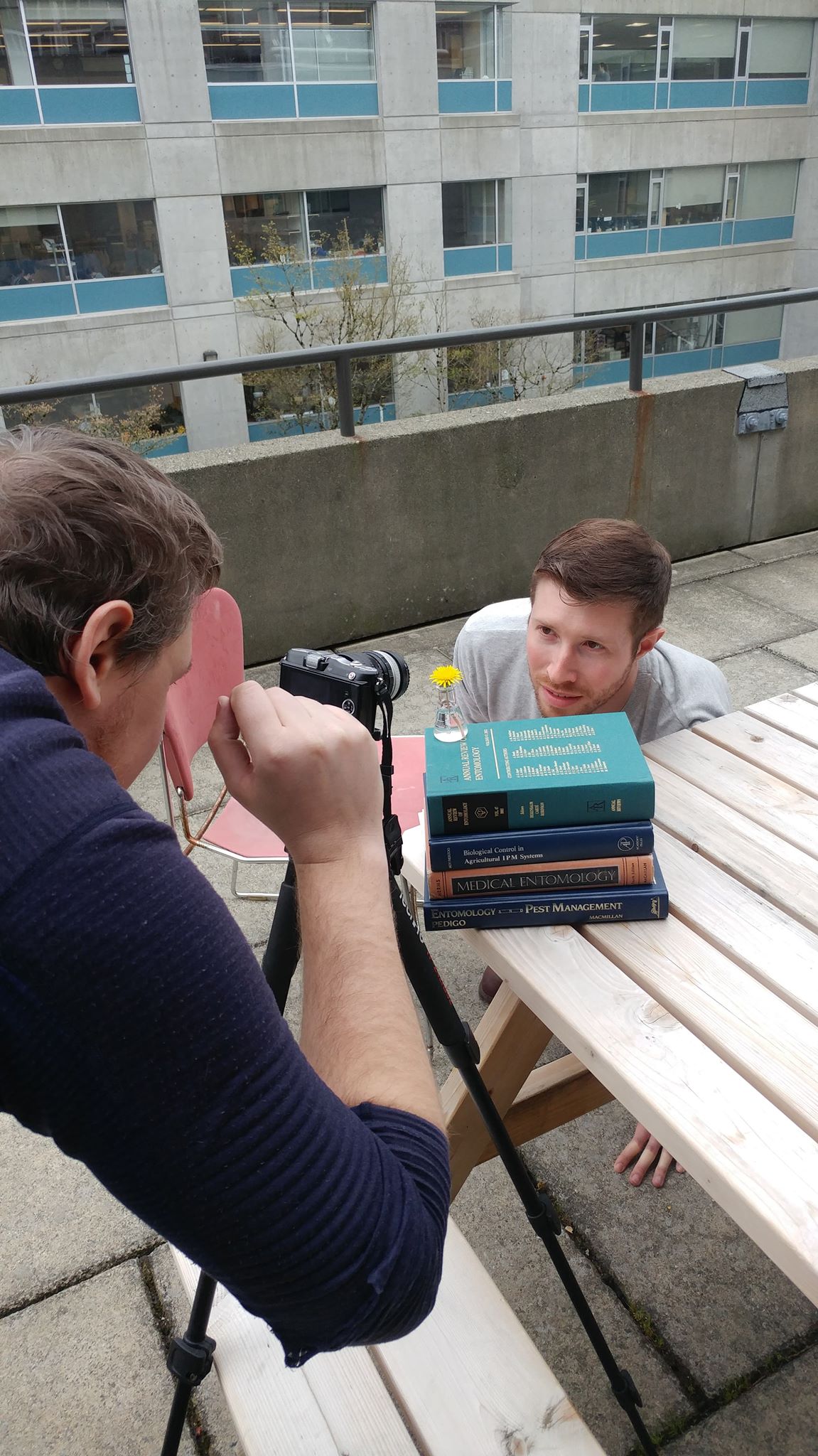 I took a series of photos for Dan Peach’s defense seminar with his study species. Since we did a bunch of work on UV vision in mosquitos, we wanted to take a UV photo of the mosquito on the flower while keeping Dan’s eyes in frame in the background. This took some careful positioning to get everything in frame but I’m quite pleased with the results. In addition to the “bullseye” the UV photograph also reveals Dan’s many freckles.
